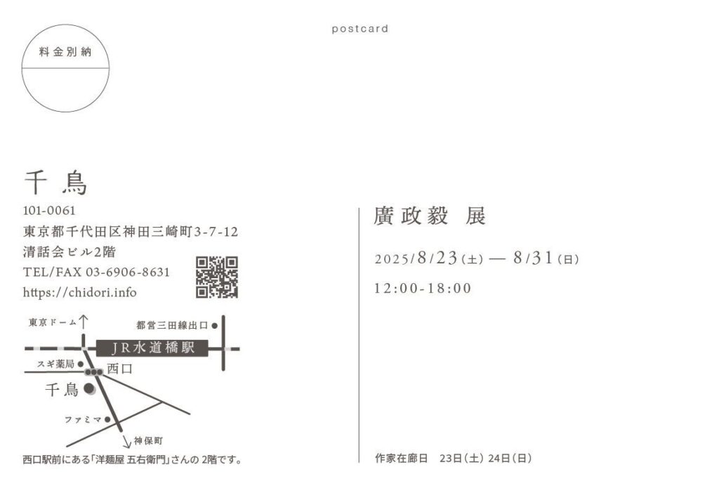 水道橋 千鳥 『廣政毅 個展』8/23〜8/31
