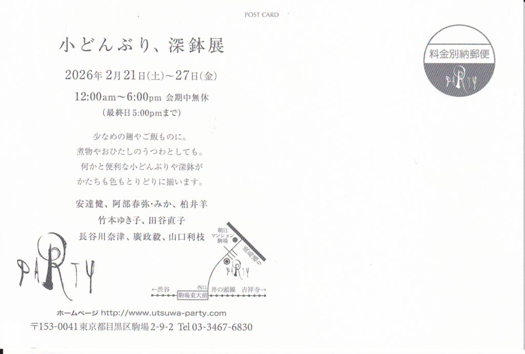さて今回、2月21日㈯から東京都目黒区のPARTYさんで『小どんぶり、深鉢展』が開催されます。